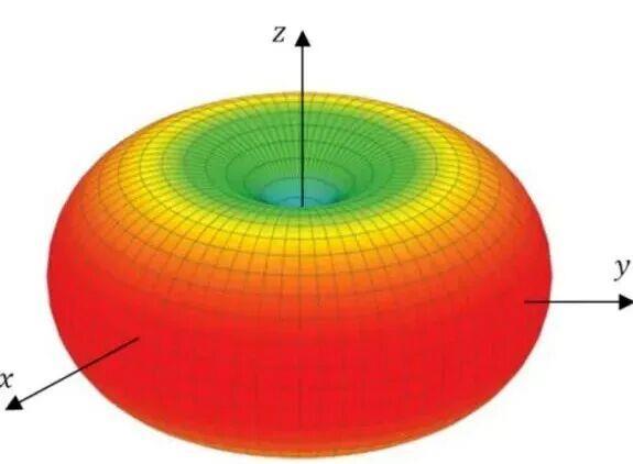 路由器的天线在向外发射信号的时候,并不是从尖端向外发射的,而是以天线为中心(即天线作为下图中的Z轴)呈现甜甜圈状向外扩散的。